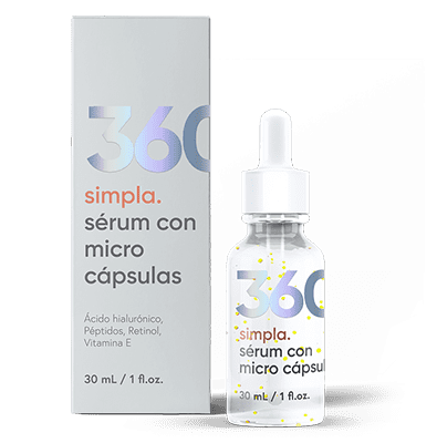 La serum Simpla 360 estimula la producción natural de colágeno, alisa las arrugas, restaura la elasticidad de la piel y tensa el óvalo facial.